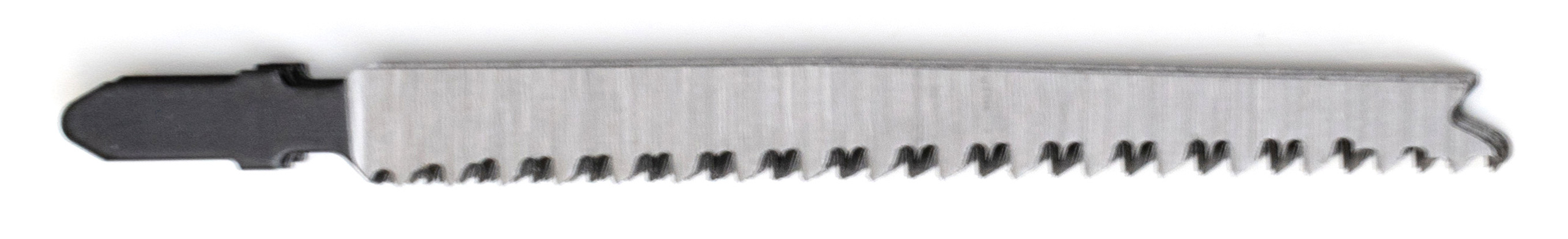 · HCS-bladen (High Carbon Steel) - deze zijn flexibel en geschikt voor zachtere materialen zoals hout, spaanplaat, MDF, kunststof, gipsplaat. Ideaal voor grof tot middelgrof zaagwerk.